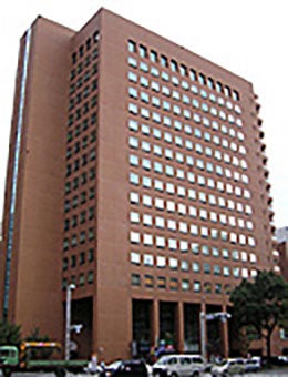 広小路通と伏見通の角にある茶色の「日土地名古屋ビル」16階です。地下鉄伏見駅に直結しています。